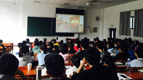 总书记的发言中多次响起热烈的掌声,我校青年团员对总书记的讲话内容展开热烈交流,从“八项规定”到“反‘四风’”,党对自身发展的要求严上加严,为不断提升各级党组织创造力、凝聚力、战斗力迈出重要一步;从‘简政放权’’到全面深化改革,我国摸索了一条中国特色的改革发展之路;从“一带一路”到“供给侧改革”,产业结构优化成效显著,人民生活水平逐步提高,在中国共产党的领导下,我国的经济发展令世界瞩目称赞;总书记多次亲临贫困山区,做出“精准扶贫”的重要指示,让全社会共享经济发展的果实,成为落到实处的承诺。