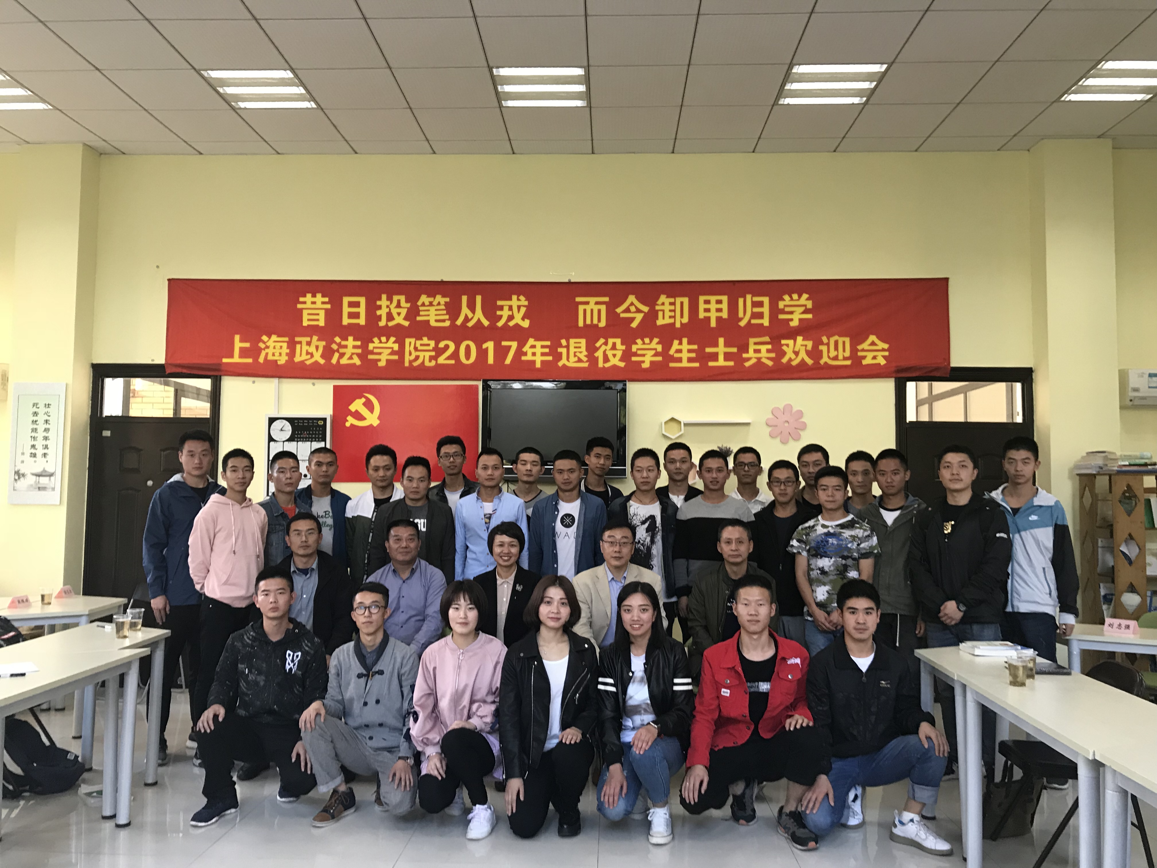 欢迎会上,刘志强表达了对退役学生返校复学的欢迎,并感谢他们对国防事业作出的贡献。同时,希望退役复学学生,一要回归本位,严以律己;二要争优创先,树立榜样;三要心怀感恩,服务社会;做到退役不褪色,复学后,继续保持和发扬人民军队的光荣传统和优良作风,用自身的成长历程、精神追求、模范行动为身边的同学做好表率。郭玉生宣读了学校2017年退役学生士兵名单。学校军魂团副团长刘宇介绍了军魂团的职责与近期活动安排,希望每一位退役学生士兵加入到军魂团,为学校的国防教育、征兵宣讲作出积极贡献。2017年退役学生士兵代表张继涛、张凌畅谈了军旅经历与收获,感谢服役期间学校对他们的关心,表示将继续发扬部队的优良作风和严明的组织纪律性,在学校和班级学习、工作中发挥积极作用。