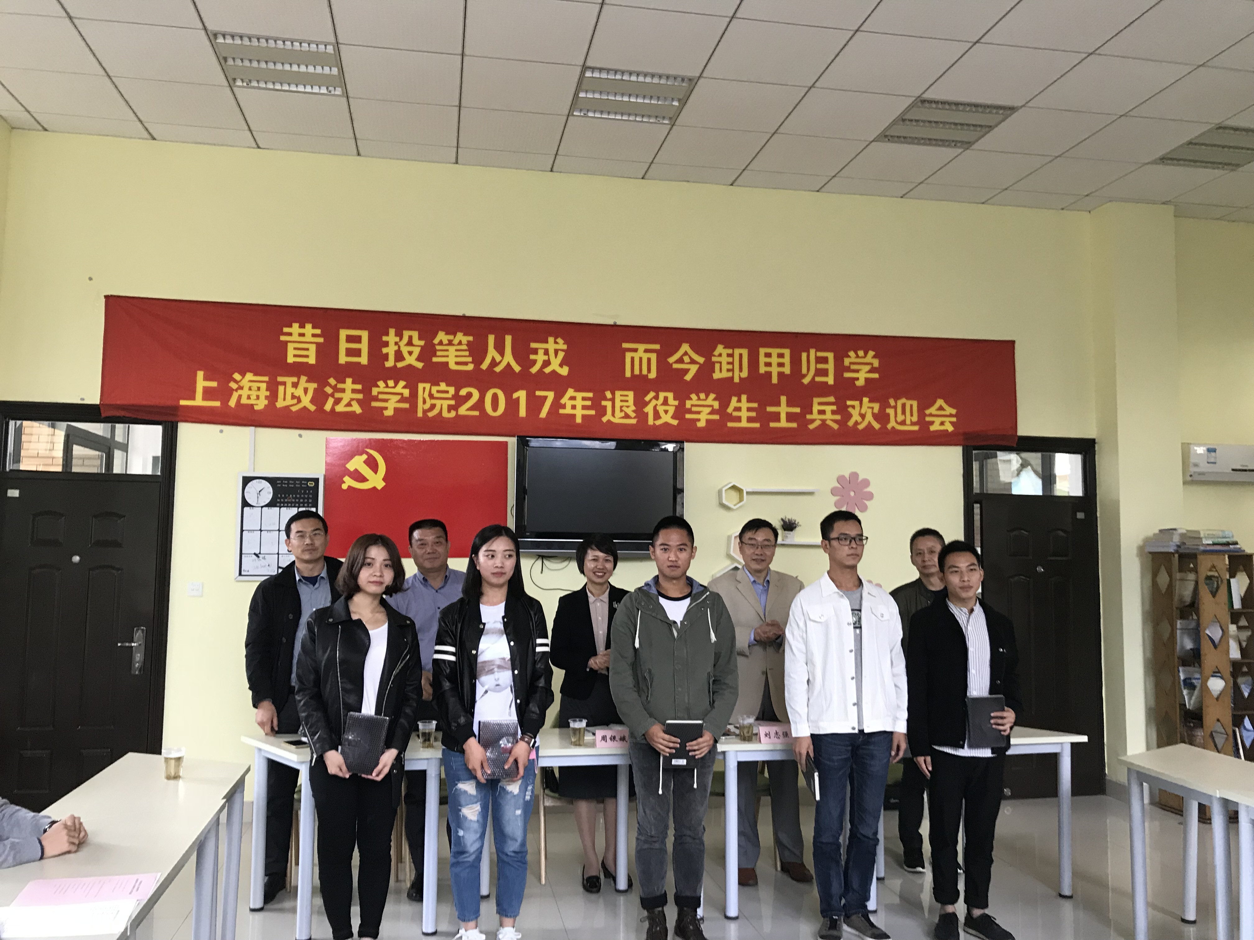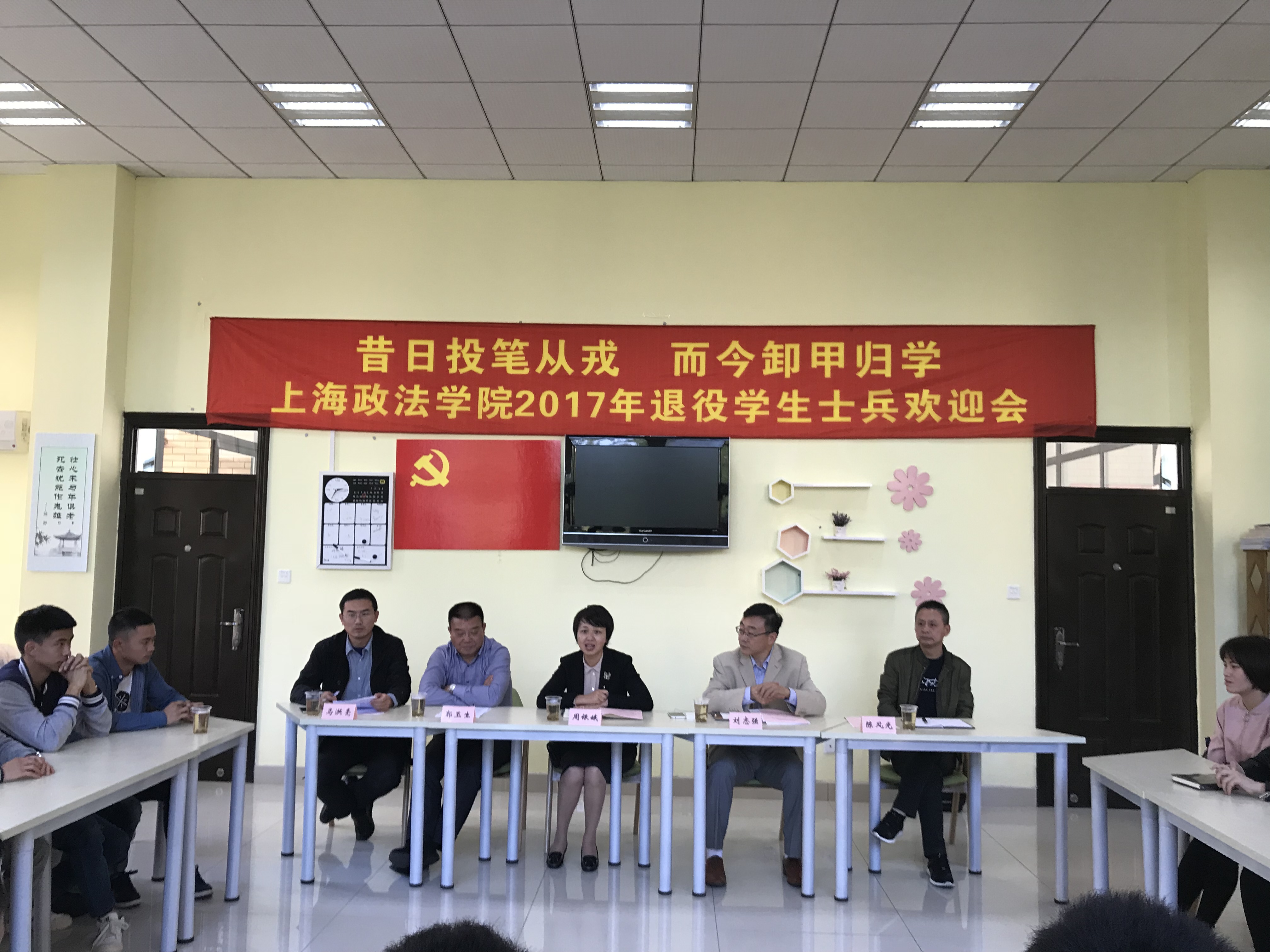 周银娥代表学校欢迎退役学生士兵返校复学,肯定了他们在部队服役期间所取得的成绩,并对他们提出了殷切期望:一是讲政治,做到家国情怀,爱国爱家,牢固树立责任、担当、爱国、奉献意识;二是守纪律,继承和发扬部队优良传统,不放松纪律的要求,遵守国家法律法规、校规校级,做到文明上网;三是能吃苦,将在部队形成的吃苦耐劳、坚强的毅力运用的学业,以优异的成绩完成学业;四是乐奉献,继续保持军人精神,服务于学校发展,平安校园建设工作。最后,周银娥指出,习近平总书记在十九大报告中,描绘中国未来发展宏伟蓝图,提出了一系列新判断、新提法、新概念、新要求、新部署,希望大家深入学习贯彻党的十九大会议精神。
