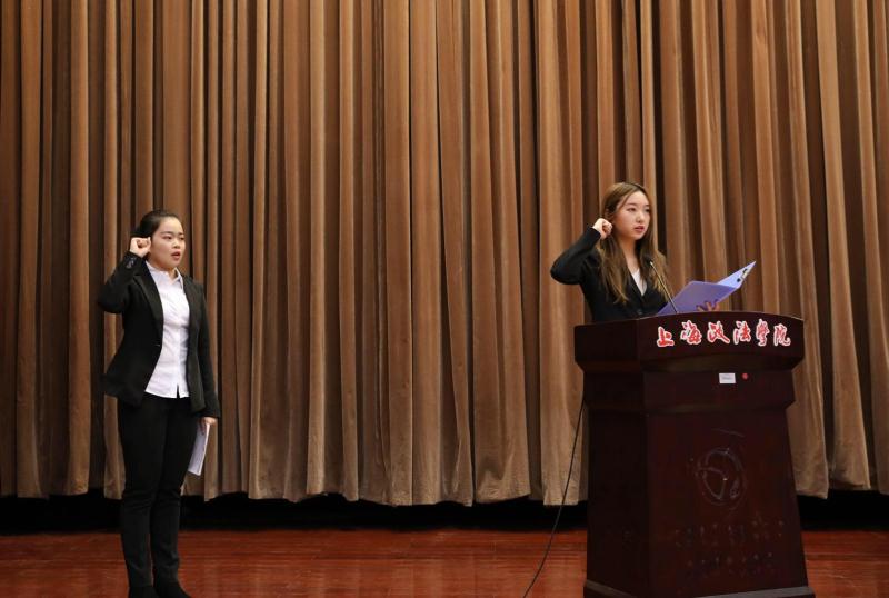 为建设优良学风,杜绝考试作弊现象,本次会议的第二大主题是考前动员。夏甘霖向同学们介绍了考场注意事项和考试违纪处理办法,校长奖学金获得者胡安安同学带领全体同学进行了宣誓,诚信考试不作弊,以诚信铸造品格,以诚信收获成功,做诚信上政人。