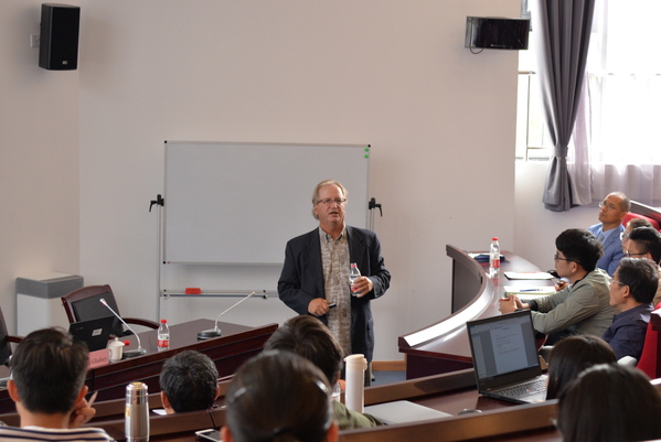 以“一带一路”倡议为背景,从古丝绸之路的角度出发思考了民族与国家的关系。他认为“一带一路”倡议是古代丝绸之路与新丝绸之路的结合,会对沿线国家的经济发展带来积极的影响。Dru Gladney又以二战时期的美国“驼峰队”为例,讨论了中美合作的历史渊源,并给中美关系未来的稳定发展提出建议。同时从“社会记忆”以及“本我、自我和超我”的角度对国家与全球化进行了解析。并就中东、中亚等地区的宗教、恐怖主义等问题与我校学者进行交流。(曹雨奇撰稿 陈伯亮摄影)