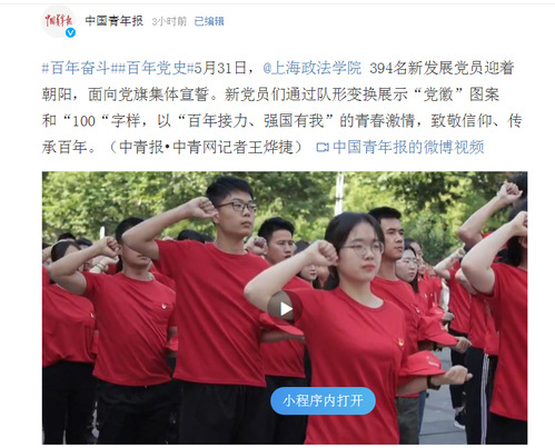 中国青年报 | #百年奋斗##百年党史# 新利18官方客服入党宣誓仪式