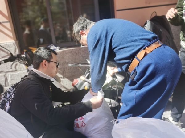 志愿服务现场,大家干劲满满,帮忙整理、搬运捐赠物资,干得热火朝天。过程中,接连遇到热心于慈善事业的社会人士前来捐赠,在与“渐冻人”张戟先生的交流中,同学们感受到坚强意志与大爱无疆的力量。