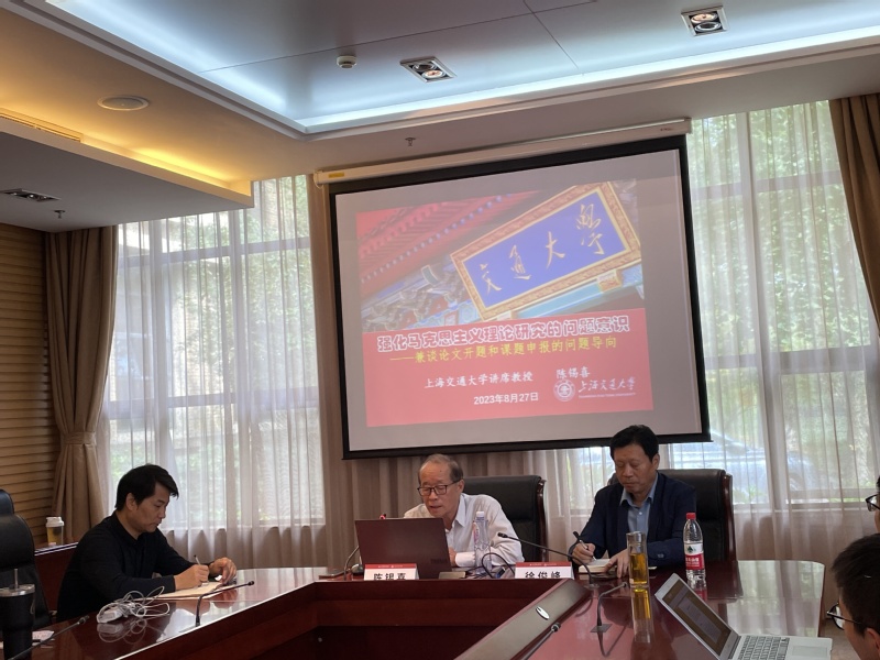 为进一步营造浓郁的学术氛围,搭建优质的学术交流平台,加强青年教师和学生的问题意识,激发科研学术创新活力,10月12日,马克思主义学院在汇知楼101会议室举办“求实”青年学术沙龙(第五场)活动。讲座邀请上海交通大学马克思主义学院讲席教授陈锡喜作题为“强化马克思主义理论研究的问题意识——兼谈论文开题和课题申报的问题导向”专题讲座。讲座由学院党总支书记徐俊峰教授主持,学院领导、青年教师以及部分研究生等50余人参加。