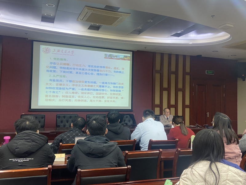 陈锡喜从主题教育“学思想、强党性、重实践、建新功”的总要求出发,谈学习习近平新时代中国特色社会主义思想的重要性以及学习方法。基于《习近平著作选读》的内容体系解读和分析,陈锡喜从“历史进程的生动记录”和“创新成果的集中反映”两个方面,生动而又深刻地阐释了习近平新时代中国特色社会主义思想如何在“应变局、布新局”中产生,又如何进一步指导中国新的具体实践的,是马克思主义认识论“从实践到认识再到实践”的生动体现,为广大师生如何“读原著、学原文、悟原理”进行了示范。