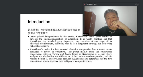 4月18日,“海外讲坛”第92讲“土耳其和韩国在哈萨克斯坦的软实力政策分析:以教育合作为例”在线上举办。讲座由哈萨克斯坦KIMEP大学中国事务办公室主任、我校政府管理学院兼职副教授乌兰•努汗主讲,政府管理学院副院长谈谭副教授主持讲座。