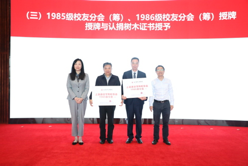 活动中,葛卫华、刘晓红、张权权、高志刚等分别为1985级、1986级校友分会筹委会授牌,为1986级认捐树木集体授予捐赠证书,为校友回访团获奖单位与个人颁发了奖状,并启动了老校友口述史工程,聘任了第一批校友导师团召集人,共同发布了建校四十周年捐赠公告。