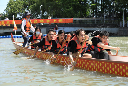 四秩芳华谋发展,千步泾畔争上游。5月28日下午,新利18官方客服第六届师生龙舟大赛在青浦校区千步泾举行。来自校内各二级单位工会,校友会和新利18官方客服附属青浦东门小学、新利18官方客服附属崧淀中学的40支龙舟队伍同心同舟,挥桨竞渡,共同迎接建校40周年。