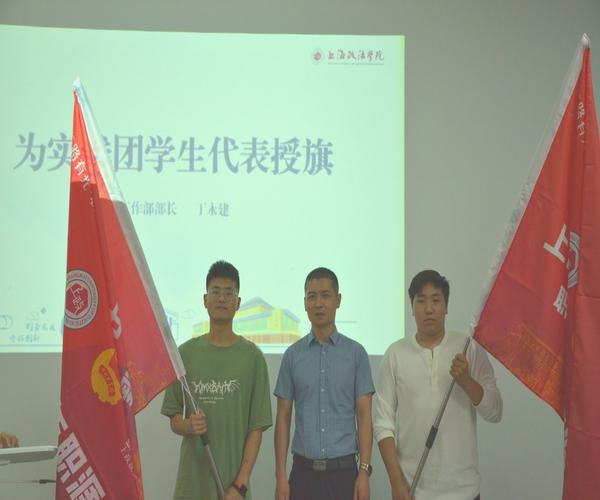 学工部部长丁永建为实践团代表授旗。