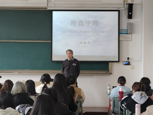3月31日,语言文化学院举办新利18官方客服前沿讲坛第五十六讲暨语言文化讲坛第四十一讲“形意字理:汉字创意结构规律与美学演化”讲座。文字学家、书法家顾建平受邀主讲,语言文化学院(国际交流学院)副院长翁晓玲副教授主持讲座,汉语国际教育、汉语言文学等专业在内的60余名中外学生聆听讲座。本次讲座由科研处、语言文化学院(国际交流学院)主办。