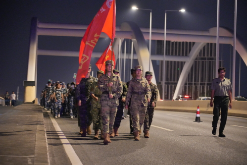 9月7日21时至22时许,我校2500余名军训参训师生沿着青浦区崧华南路夜行10公里,完成了“重走抗战路·青春向未来”——纪念中国人民抗日战争暨世界反法西斯战争胜利80周年主题行军拉练活动。