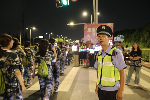 随着校党委副书记、副校长、军训团政委高志刚的一声令下,19时,军训拉练正式开始。2500余名师生从上政出发,浩浩荡荡的队伍行进在路上宛如一条巨龙,闪耀青春风采,散发奋进气势,汗水与微笑同时出现在一张张稚嫩却又坚毅的脸庞上,眼神充满了上政学子的自信。同学们相互打气,为疲惫的脚步注入新的力量,辅导员鼓励同学们坚持下去就是胜利,交警有序指挥着交通守护行进中的队伍.......
