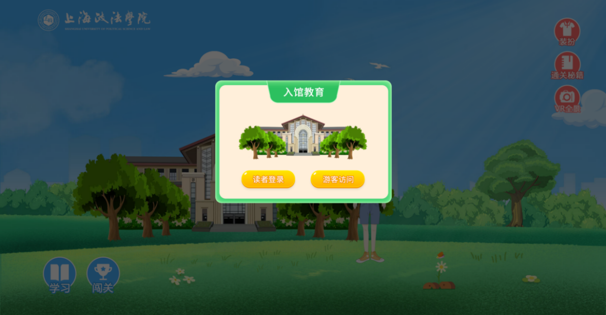 1.进入首页,点选“学习”按钮,并输入个人信息进行登录。如果你只想浏览知识点,不参与“闯关”,可以点选“游客访问”,如需闯关请点击读者登录。