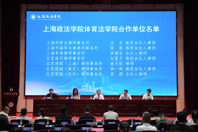 会上,体育法学院与包括上海市联合律师事务所、海华永泰律师事务所、申浩律师事务所、北京浩天律师事务所、观韬律师事务所在内的7家知名律师事务所签署合作协议,未来将共建实践教学基地,推动产学研协同发展。