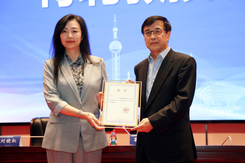 特聘教授聘任仪式上,刘晓红校长为中国法学会体育法学研究会常务副会长、学术委员会主任、清华大学法学院博士生导师田思源教授颁发聘书。