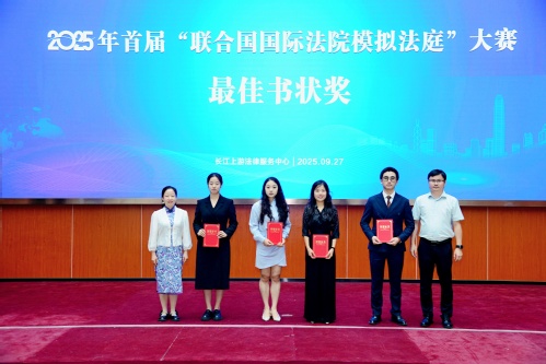 在近日圆满落幕的2025年首届“联合国国际法院模拟法庭”大赛中,我校代表队表现卓越,一举夺得全国团体赛亚军,并荣获最佳书状奖、优秀指导教师奖、优秀组织单位奖,另有1名选手获评优秀辩手。