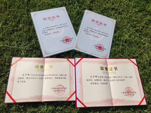 实习期间,我校选派的沈铭劼、方文菁、韩佳佳、杨丽茹、陈杰、谢文静、王少坤、许梦圆、魏应超、任茗婕、王润泽11名同学凭借扎实的法学功底、严谨的职业态度与出色的实践能力,赢得各实习法院的高度认可,并取得优异成绩。其中,王少坤同学荣获“优秀实习法官助理”“优秀调研成果”“优秀法律文书”三项荣誉;沈铭劼同学获“优秀调研成果”;许梦圆同学获“优秀典型案例”“优秀法律文书”;魏应超同学获“优秀法律文书”,充分体现了我校法学人才培养的扎实成效。