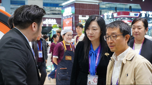 告别上政“小叶子”后,校领导专程到光明食品集团等合作单位展区进行参观,深入了解校企合作成果,并与展区工作人员亲切交流。