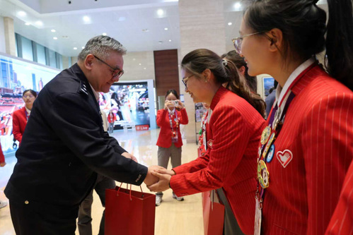 11月7日下午,校党委书记葛卫华,党委副书记、校长刘晓红,党委副书记、副校长高志刚一行来到国家会展中心,亲切看望慰问正在馆内外一线服务的上政“小叶子”。青浦区委副书记刘琪,上海市公安局青浦分局党委副书记、政委张益群,团市委挂职副书记唐志宇,及上海市政府办、上海市公安局青浦分局、青浦区委社会工作部、青浦区团委等相关单位、部门负责同志与校领导共同慰问,校内相关职能部门和二级学院有关负责人参加了慰问活动。