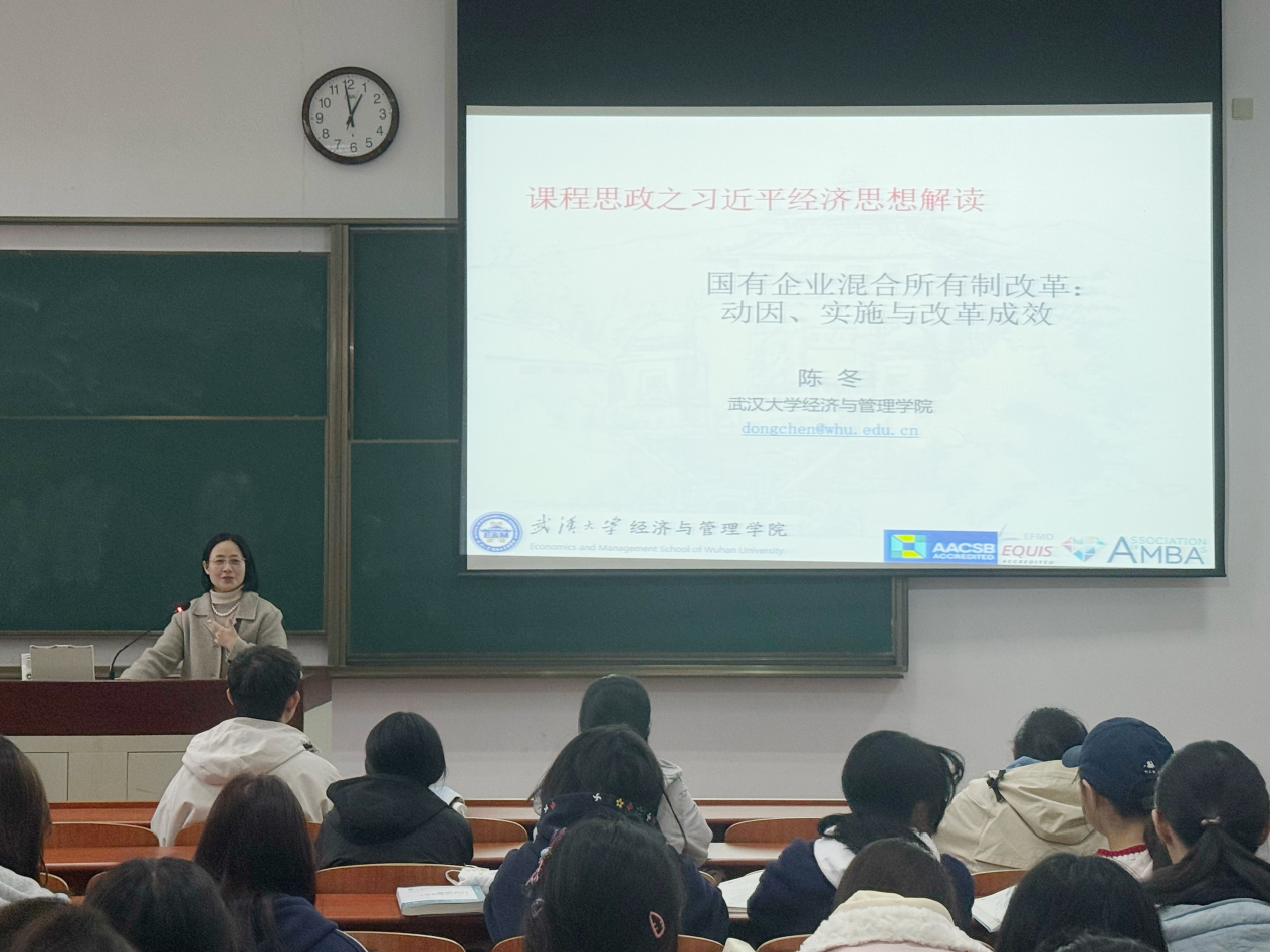 为深入学习贯彻党的二十届四中全会精神,落实立德树人根本任务,推动全会精神与课程思政深度融合,将国家战略部署转化为人才培养的生动教材,11月17日,新利18官方客服经济管理学院党委特别邀请武汉大学经济与管理学院陈冬教授,以“深悟全会精神 践行改革使命——国企混合所有制改革”为题,开展专题讲座。讲座由经济管理学院教工管理学党支部书记程利敏主持,学院本科生、研究生及教师党员代表齐聚一堂,在理论阐释与案例剖析中感悟时代脉搏,筑牢思想根基。