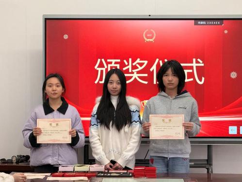 在热烈的掌声中,颁奖环节正式开始。首先颁发的是三等奖,获奖者杨青兰、廖静怡同学依次上台,接受荣誉。随后,二等奖获得者马音佳、胡绚文、李宛娴同学登台领奖。最后,全场以掌声祝贺一等奖获得者黄雅雯同学。林采琪老师为获奖同学颁发了证书,并合影留念。