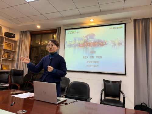 为帮助2025级新生快速适应大学生活、明确未来发展方向,社会学教研室主任段媛媛副教授于11月24日晚在A4-201开展了题为“社会学能做什么?”的新生讲座。本次讲座围绕专业学习、实践竞赛和考研留学三个核心内容开展,并特别邀请了三位优秀学长学姐,为大一新生带来了一场干货满满的经验分享。