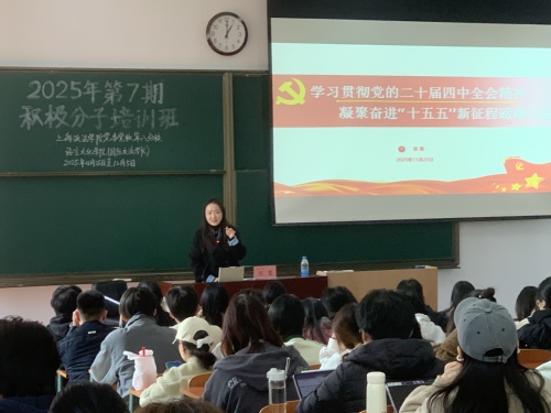 张慧围绕党的二十届四中全会的重大意义、核心要义与实践要求进行了系统梳理和深入解读。她结合翔实的数据与生动的案例,重点阐释了全会对全面深化改革、推进中国式现代化作出的战略部署,深刻分析了当前国内外形势,并引导学员们思考在国家发展新征程中青年一代的历史责任与担当。她特别指出,作为积极向党组织靠拢的先进分子,必须先学一步、学深一层,深刻领会党中央的战略意图,将个人成长融入国家发展大局。