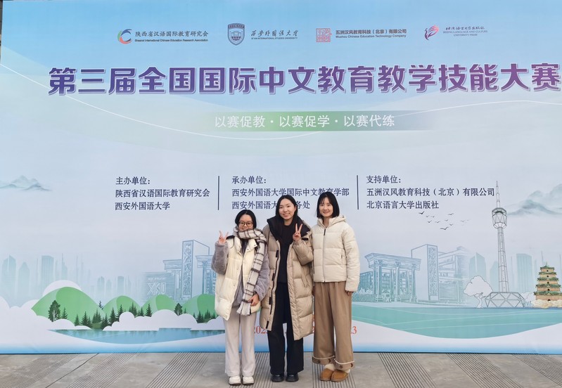 11月21日至23日,由陕西省汉语国际教育研究会与西安外国语大学主办、西安外国语大学国际中文教育学部与西安外国语大学教务处承办的“第三届全国国际中文教育教学技能大赛”成功举办。我校语言文化学院(国际交流学院)留学生教学教研室汤如阳老师带领2023级越南留学生阮秋河和2024级蒙古留学生心爱代表我校参赛,获大赛优秀奖。