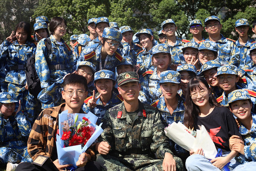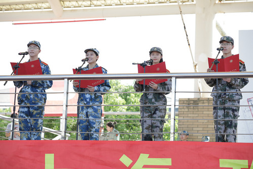 参训学生代表对辛勤付出的教官和老师表示感谢,他们倡议全体同学以这次军训为起点,在今后的学习生活中,提高素养、勤学善思、学以致用,以青春之我、奋斗之我,为祖国发展贡献力量。