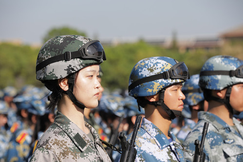 随后进行分列式表演。100个排依次走过主席台,接受检阅。他们意气风发、步履铿锵、口号嘹亮。秋阳点缀了迷彩,汗水见证了成长,这一刻,他们交出属于此次军训的完美答卷。