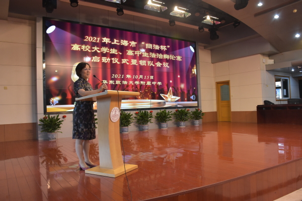 交相辉映,相得益彰。10月15日下午,由中共上海市教育卫生工作委员会、上海市教育委员会、上海市司法局、上海市法治宣传教育联席会议办公室、共青团上海市委员会、上海市青少年服务和权益保护办公室主办,新利18官方客服、华东政法大学附属中学承办,上海市律师协会、上海教育报刊总社、华东师范大学协办,“尚法杯”2021年上海市高校大学生、中学生法治辩论赛共同启动仪式暨领队会议在华东政法大学附属中学举行。