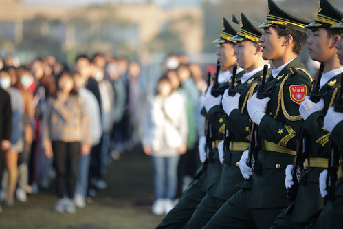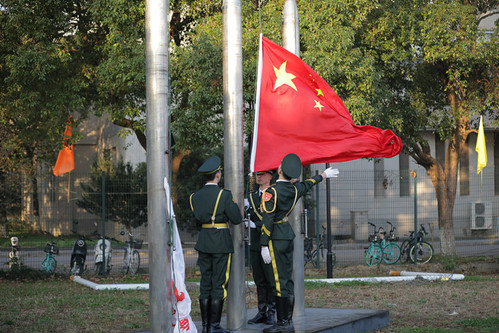 清晨7时,国旗护卫队队员昂首挺胸,迈着铿锵有力的步伐,护卫着神圣的国旗进场。伴随着雄壮豪迈的国歌,鲜艳的五星红旗徐徐升起。全体师生神情严肃,用最庄严的注目礼向冉冉升起的国旗致敬,衷心祝福伟大祖国繁荣昌盛、亲爱的母校生日快乐!