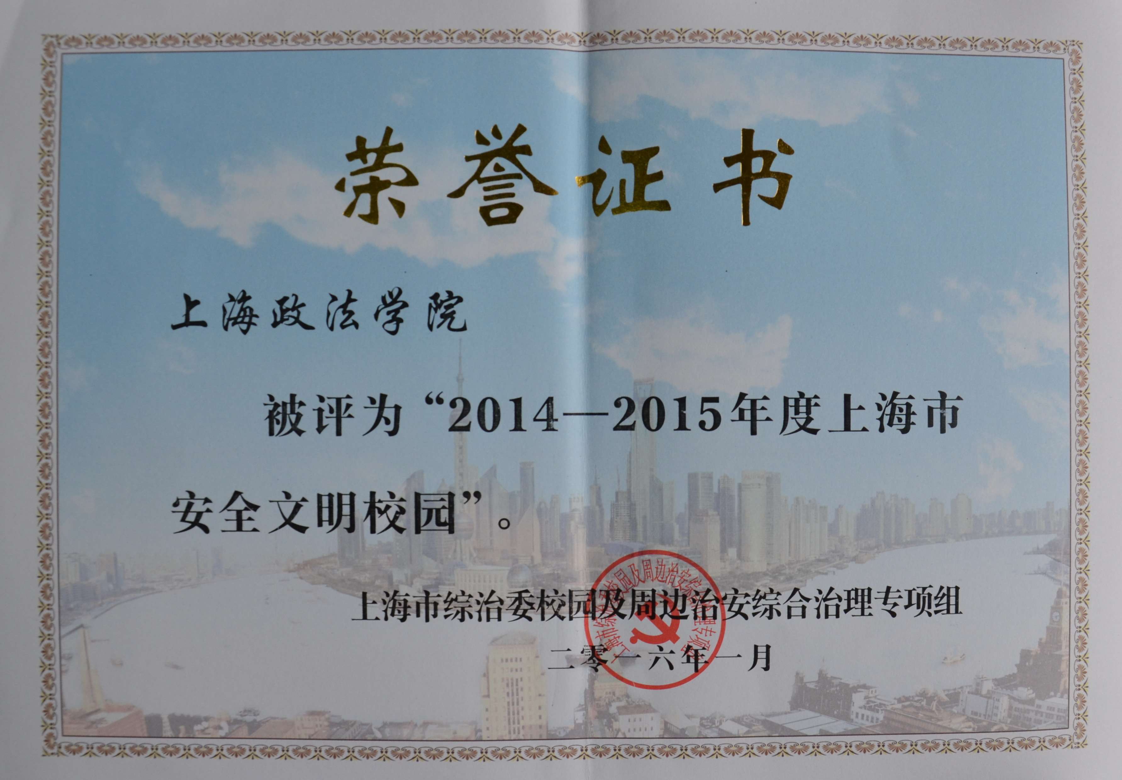 会议对“2014-2015年度上海市安全文明校园”称号获得单位进行表彰并颁发证书。这是我校继2010-2011年度、2012-2013年度获得上海市安全文明校园称号后,又一次获得此项荣誉。