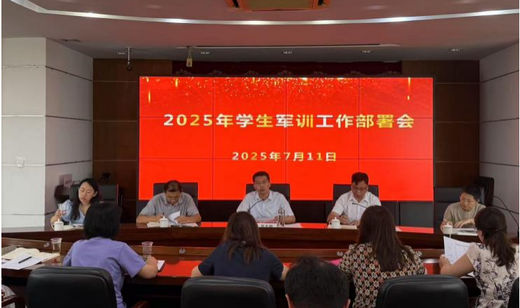 为确保2025年学生军训工作的高质量开展,按照“早谋划、早安排、早准备”的工作要求,7月11日上午,由校党委副书记、副校长高志刚主持召开了学校2025年学生军训工作部署会,军训团团部相关负责人和二级学院学生工作负责人及相关人员参加会议。
