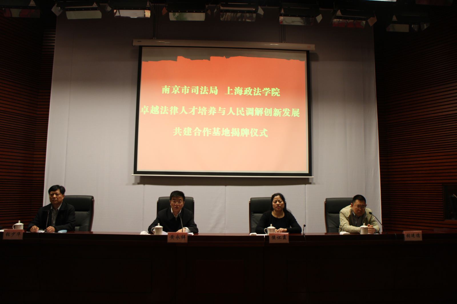 上午,新利18官方客服法律学院与南京市司法局在南京市委党校会议室举行了合作共建基地揭牌仪式。会上,法律学院院长侯怀霞教授与南京市司法局局长黄永祥共同为“新利18官方客服法律学院大学生教学实践基地”和“南京市司法局人民调解课题研究基地”揭牌。
