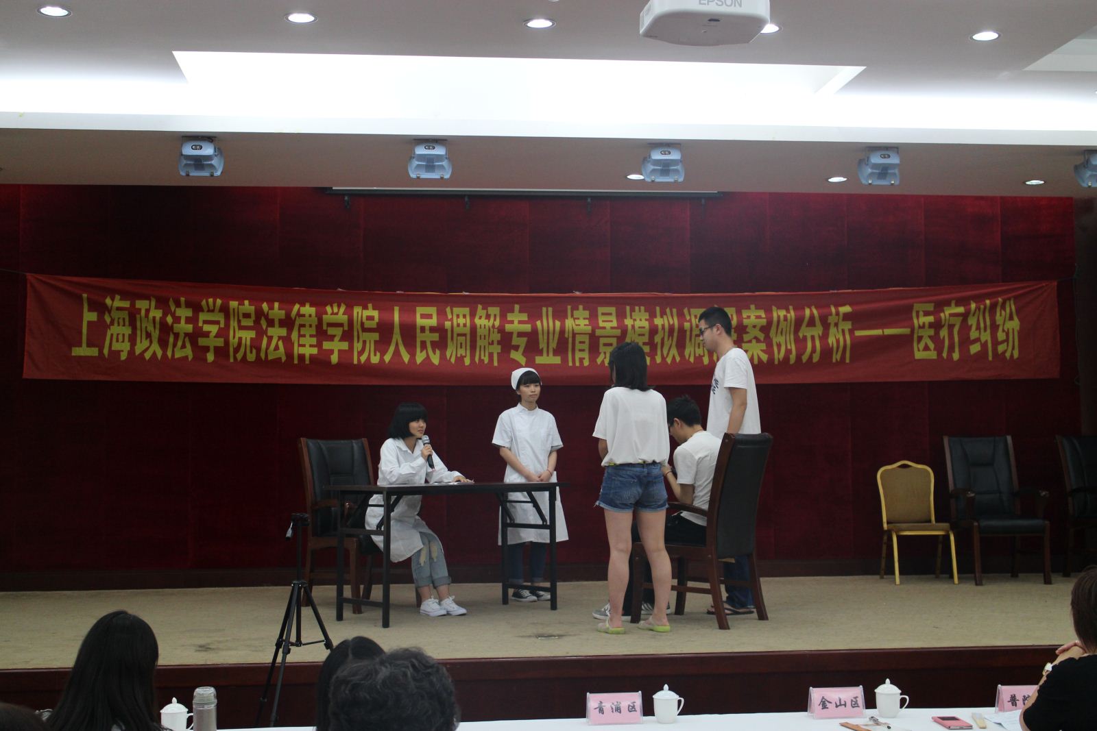 第二个环节是人民调解专业情景模拟调解案例分析——医疗纠纷。在此环节,分别由2012级和2013级人民调解专业的学生现场模拟医患纠纷的案例,并针对案例进行了模拟调解。模拟案例中,现场气氛活跃,医患矛盾冲突尖锐,案例情节生动真实。
