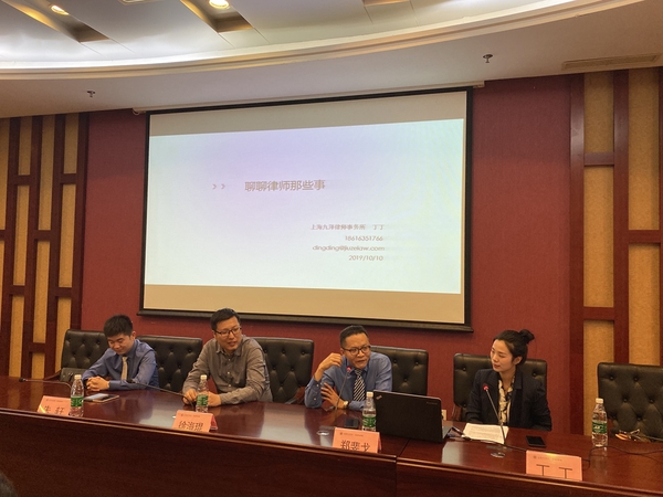 10月10日下午,法律学院在综合研究中心107会议室召开了“聊聊律师那些事”主题座谈会,法律学院党总支副书记徐海琨出席并主持了本次会议。会议主讲人为上海市九泽律师事务所主任郑斐戈律师、丁丁律师和朱轩律师。