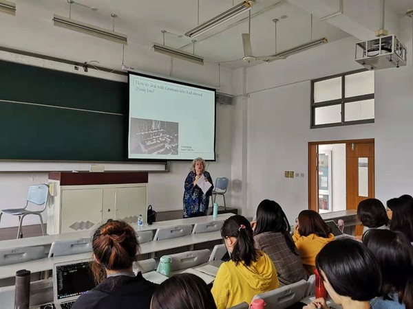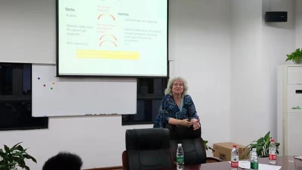 Pauline Westerman教授在驻访期间为我校法学硕士和法律硕士开展了四场讲座,内容涉及“法律的功能”“法律的特征”“界定法律的不同视角”以及“刑法的哲学基础”等。Pauline Westerman教授在讲座过程中,注重引导学生思考问题,注重与学生的互动,方法灵活,通过案例、重大历史事件等生动的题材,由浅入深地阐释法哲学领域的基本问题,受到学生的热烈欢迎。每场讲座结束后,都有学生向教授请教问题,教授均予以耐心细致地解答。另外,也要十分感谢在讲座过程中提供支持的王卫明老师和杜雪晶老师(李泽 撰稿)