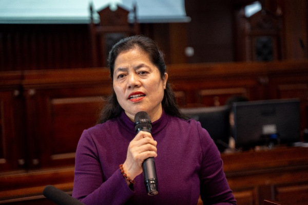 2019级研究生姚旭鑫作为学术之星代表进行发言。她总结了自己在读研期间的各项收获,鼓励同学们能够扶摇万里、振翅高飞,并表达对法律学院全体研究生的美好期盼。
