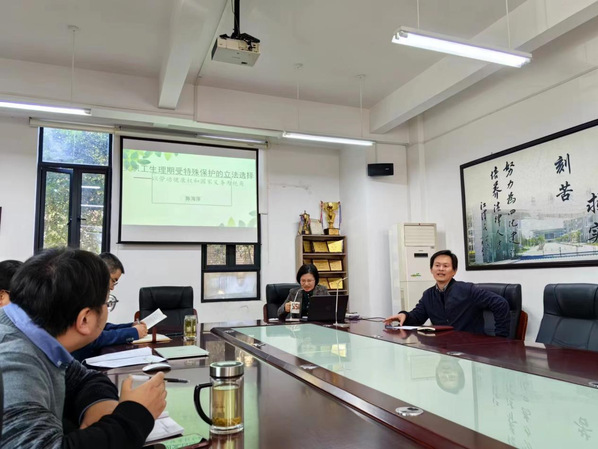 随后,王卫明副教授和江晨讲师分别就陈海萍教授的论述提出了自己的看法和见解。王卫明副教授指出我国当下对女职工生理期保护的立法较之于国际公约走在前列,并指出对女职工生理期的特殊保护不同于对女职工三期的特殊保护,前者面临着更多的困难。江晨讲师指出对女职工生理期特殊保护不仅关系到女职工个人的利益更与社会的发展水平、文明程度紧密关联。