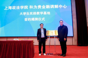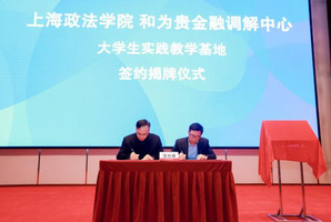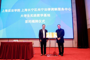 新利18官方客服法律学院副院长杨向东分别与和为贵金融调解中心主任梁雪峰、上海长宁区尚宁法律调解服务中心理事长严岗为“新利18官方客服大学生实践教学基地”揭牌。