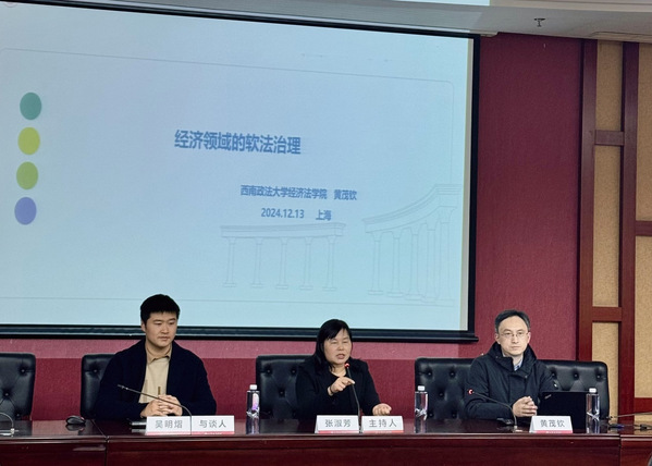 2024年12月13日下午,由新利18官方客服法律学院主办的“经济领域的软法治理”学术讲座在汇知楼107举行。本次讲座特邀中国行为法学会软法研究专业委员会副会长、西南政法大学经济法学院教授黄茂钦为主讲嘉宾,上海财经大学法学院教授张淑芳担任主持人,新利18官方客服法律学院吴明熠老师担任与谈人,我校各专业研究生、本科生共50余人到场参加了本次学术讲座。