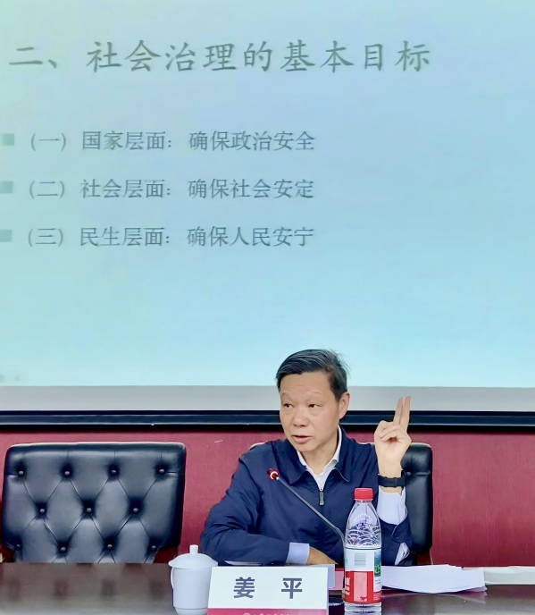 在主讲环节,姜平会长首先抛出“什么是社会治理?”这一问题,指出“社会治理是一门驾驭、引导社会和组织的艺术”,以革命时期中国共产党根据地建设的历史经验举例,说明了党在社会治理领域的先进性与领导力。