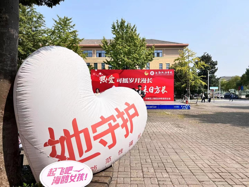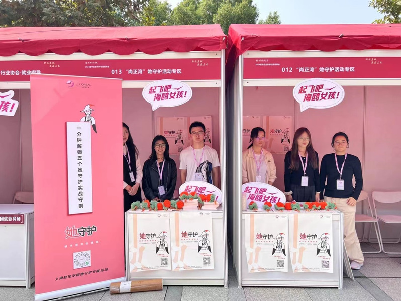 为助力本校女大学生成长成才,更好地宣传“她守护”项目的教育理念,增强我校女大学生的自我保护意识,在上海市女企业家协会、市妇联女大学生“海鸥计划”的大力支持下,在市教育工会妇女工作委员会的指导下,我校妇女工作委员会于2023年10月17日下午在庸夫楼前、青马广场开展“共建她守护,共同守护她”主题活动,延续为女性赋予力量的使命,聚焦性骚扰问题,打破社会偏见,守护女性力量,呼吁所有女生一起,共同守护“她”。