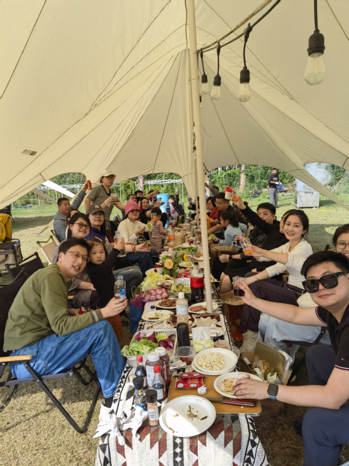 活动当天,阳光明媚,微风和煦,大家深入大自然的怀抱,体验着与平日截然不同的轻松与愉悦。在营地,教师们参与户外烧烤,有的负责摘菜,有的负责串肉,还有的负责调味。在忙碌的过程中,教师们互相交流教学心得与生活趣事,现场充满了欢声笑语。教师们围坐一起,品尝着自己亲手制作的美食,尽享假期的愉悦,彼此间的了解和友谊在这温馨的氛围中进一步加深。