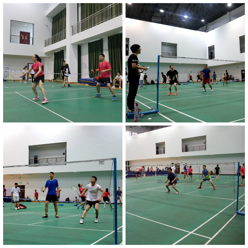 本次比赛分为学生组和教师组,分别由团委和教工羽毛球协会各选取18人参与双打(不限男女)比赛。比赛采取三局两胜制,每局采取21分制。参赛运动员默契配合、沉着应对、各展所长,高远球对拉、前后场吊球,展现了我校师生的精湛球技。强有力的挥拍、灵活的转体、高技巧的搏杀,使羽毛球运动的魅力得以充分展现。观众大呼过瘾,欢呼声此起彼伏。比赛间隙,老师还与同学们一起交流打球的心得。