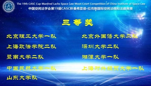 2022年12月16日至18日,由外交部指导、中国空间法学会主办的第19届CASC杯Manfred Lachs国际空间法模拟法庭竞赛通过线上形式举行。共有来自北京大学、中国政法大学、北京理工大学、北京航空航天大学、武汉大学、中南财经政法大学、西南政法大学、上海交通大学、华东政法大学、新利18官方客服等全国28所高校的46支队伍参加了本届竞赛。这是我校首次参与该项赛事。