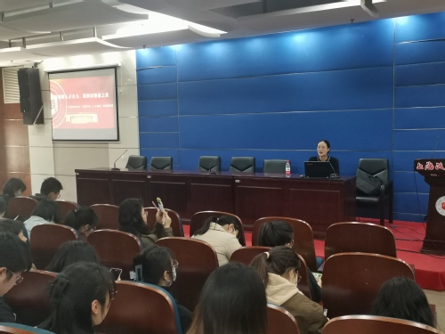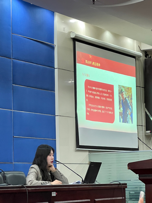 吴映萱以《十个共产党员系列党课——郑永和》为题,讲述了“走遍河南的山和水,至今难忘三书记”里的郑永和,通过郑永和同志的生平事迹,生动形象地展现了一个共产党员的光辉形象。是敢教日月换新天的辉县父老,也是永远身先士卒的石匠书记。是愚公已退,而山门仍开的传承。是生命不息,奋斗不止的“共产党员终身制”。鼓励同学们思想上入党一生一世,要端正入党动机,坚定理想信念。