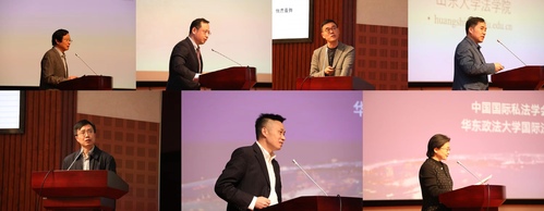 论坛议题四为“长臂管辖权法律问题”,由我校国际法学院副院长石俭平副教授主持。华东政法大学国际金融法律学院院长贺小勇教授、复旦大学法学院马忠法教授、华东政法大学国际法学院袁发强教授、南京大学法学院宋晓教授、中南财经政法大学法学院向在胜教授和复旦大学一带一路及全球治理研究院荆鸣助理研究员先后发言,围绕“长臂管辖权”及其合理性、域外效力、历史演进以及与我国涉外管辖权理论建构的关系的问题展开讨论。