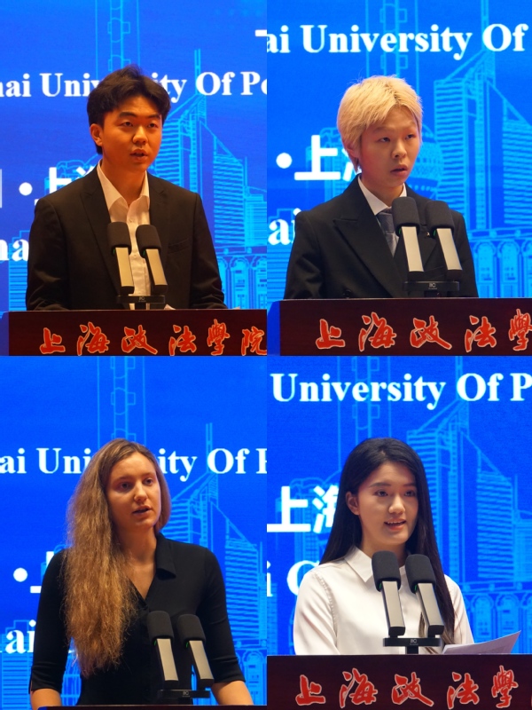 (图2从左到右,从上至下依次为:国际法学院学生丁子洋、李莱特、“尚合青年”高水平研修生项目成员Kutovaia Mariia 玛丽、国际法学院学生单一桐)